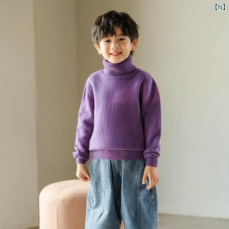 子供服 ニット・セーター 高品質ウール100% タートルネック セーター 男の子 女の子 幼児 小学生 無地 トップス 秋冬 防寒 かわいい おしゃれ インナー やわらか あったか 通園 通学 金茶色 黄色 灰色 黒色 紫色 緑色 ベージュ 青色 100