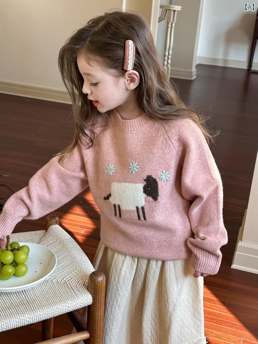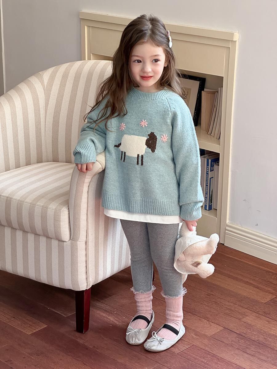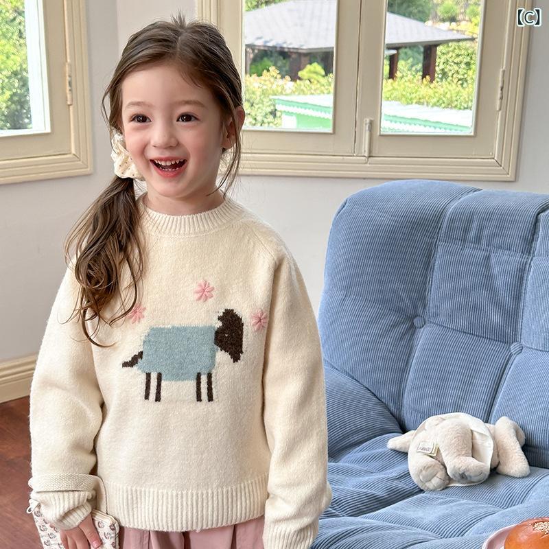 子供服 セーター 女の子 ニット トップス 春秋 かわいい 羊柄 ベビー 長袖 丸首 プルオーバー カットソー 普段着 通園 通学 ピンク系 ブルー系 ベージュ系 | Kneebaファッションショップ