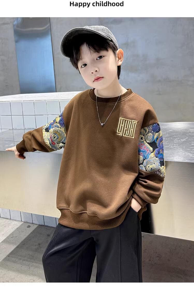 子供服 男の子用 スウェット 2024年秋冬 ミドル丈 ビッグシルエット トレーナー ボーイズ トップス 長袖 カッコいい 普段使い スポーツ 部屋着 ブラック系 ブラウン系