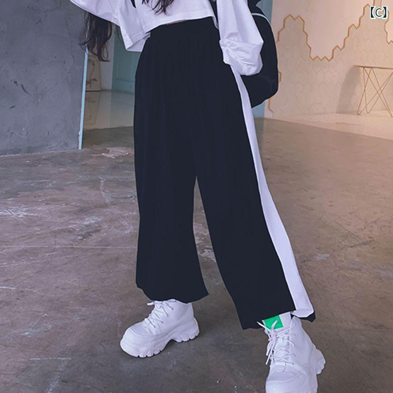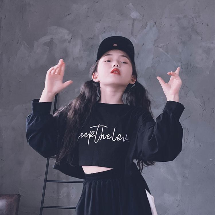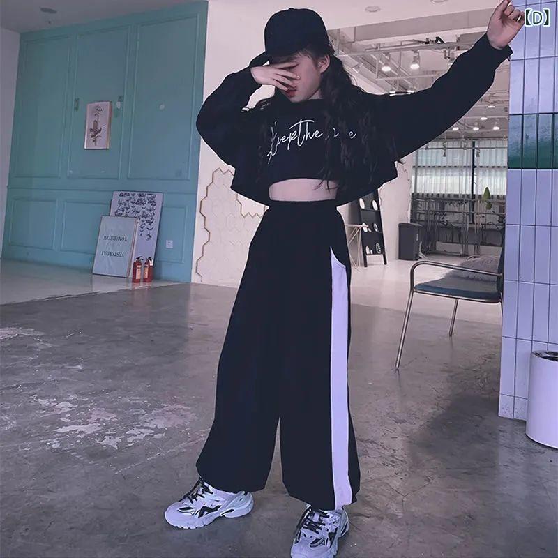 子供服 長袖Tシャツ ガールズ へそ出しトップス & パンツ 上下2点セット ダンスウェア カジュアルスタイル 綿混紡 ブラック & ホワイト 110cm 120cm 130cm 140cm 150cm 160cm 170cm