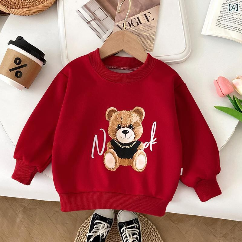 子供服 スウェット 男女兼用 長袖 トップス カットソー ラウンドネック プルオーバー 赤 灰色 緑 快適 かわいい 韓国風 ベビー 幼児 80 90 100 110 120 130 140