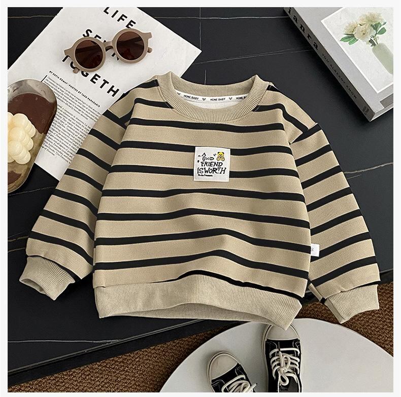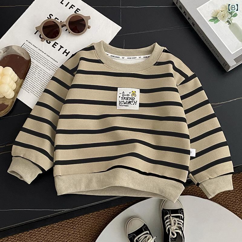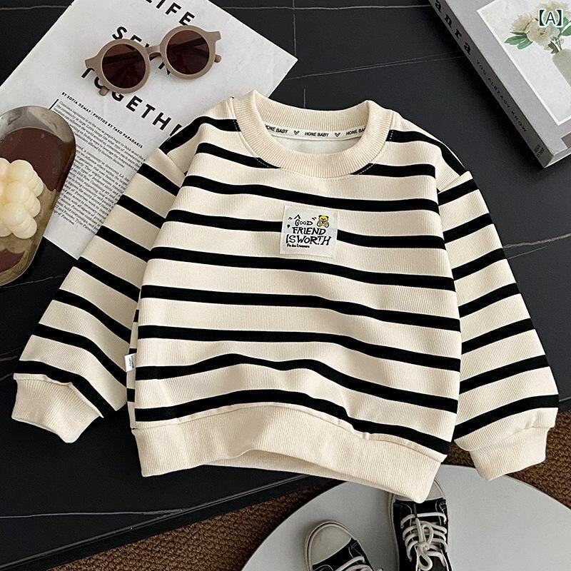子供服 スウェットシャツ 春秋 女の子 男の子 長袖 トップス ストライプ柄 韓国風 学生 普段使い