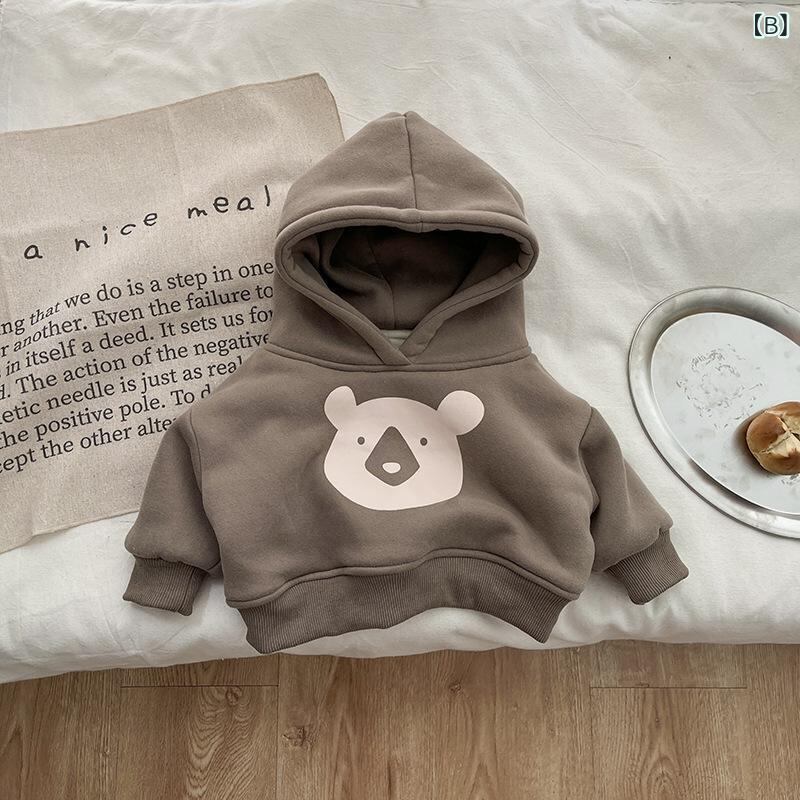 子供服 スウェット 秋冬 ベビー 裏起毛 厚手 トレーナー 男女兼用 韓国風 クマ柄 冬 暖かい トップス アウター 66cm 73cm 80cm 90cm 100cm 炭黒 カーキ