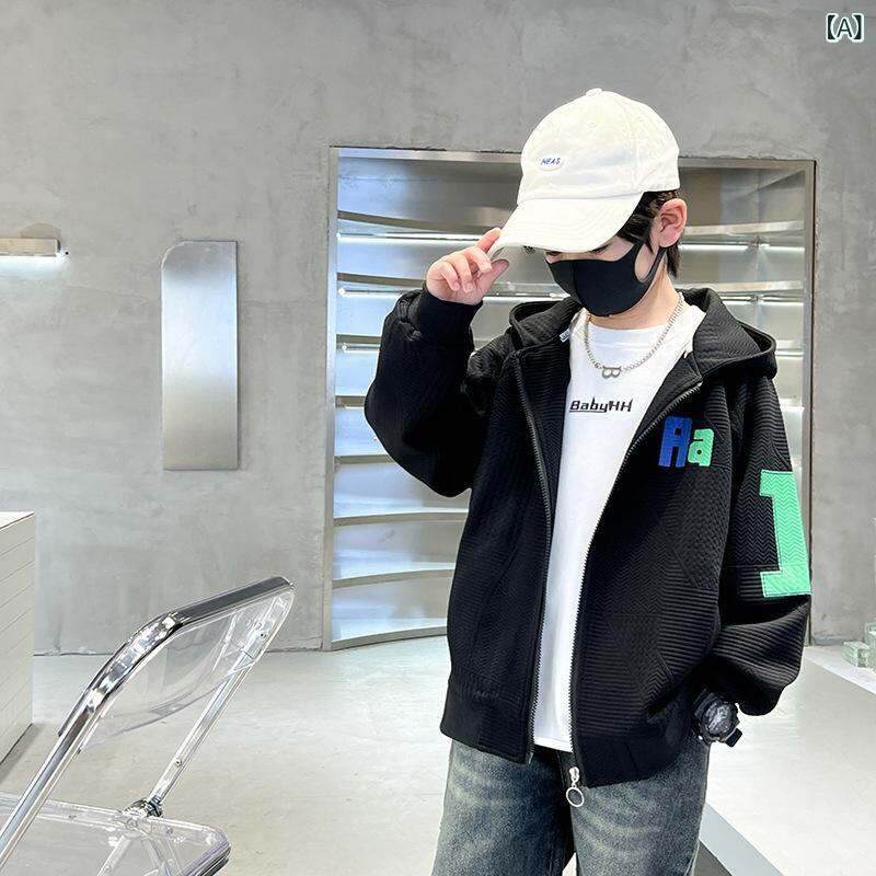 キッズ 男の子 パーカー ジップアップ スウェット アルファベット柄 スポーツ 普段着 長袖 ポリエステル ブラック グレー 120cm 130cm 140cm 150cm 160cm 170cm 春秋