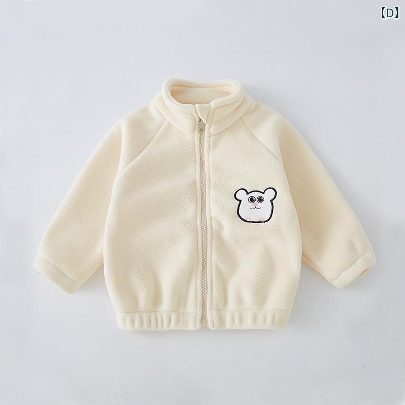 子供服 アウター ベビー服 上着 フリース ジャケット 裏起毛 暖かい 防寒着 ジップアップ 長袖 男女兼用 幼児 カジュアル かわいい 秋冬 ピンク ブルー グリーン ベージュ 73 80 90 100 110