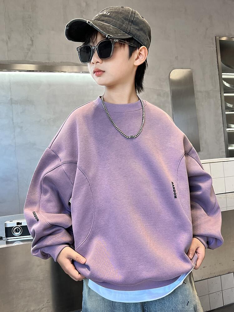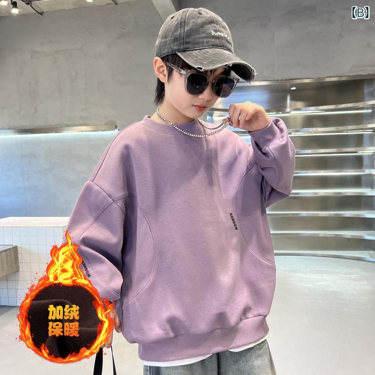 キッズ 男の子用 スウェット トレーナー トップス 秋冬 綿100% 長袖 プルオーバー ゆったり 普段着 部屋着 紫 パープル系