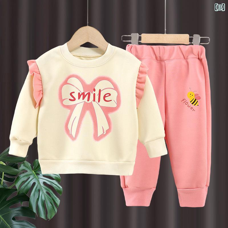 子供用スウェット セットアップ 女の子 長袖 トップス パンツ 2点セット かわいい 春秋 冬 中小子供服 スポーツ 普段着 パープル ピンク系