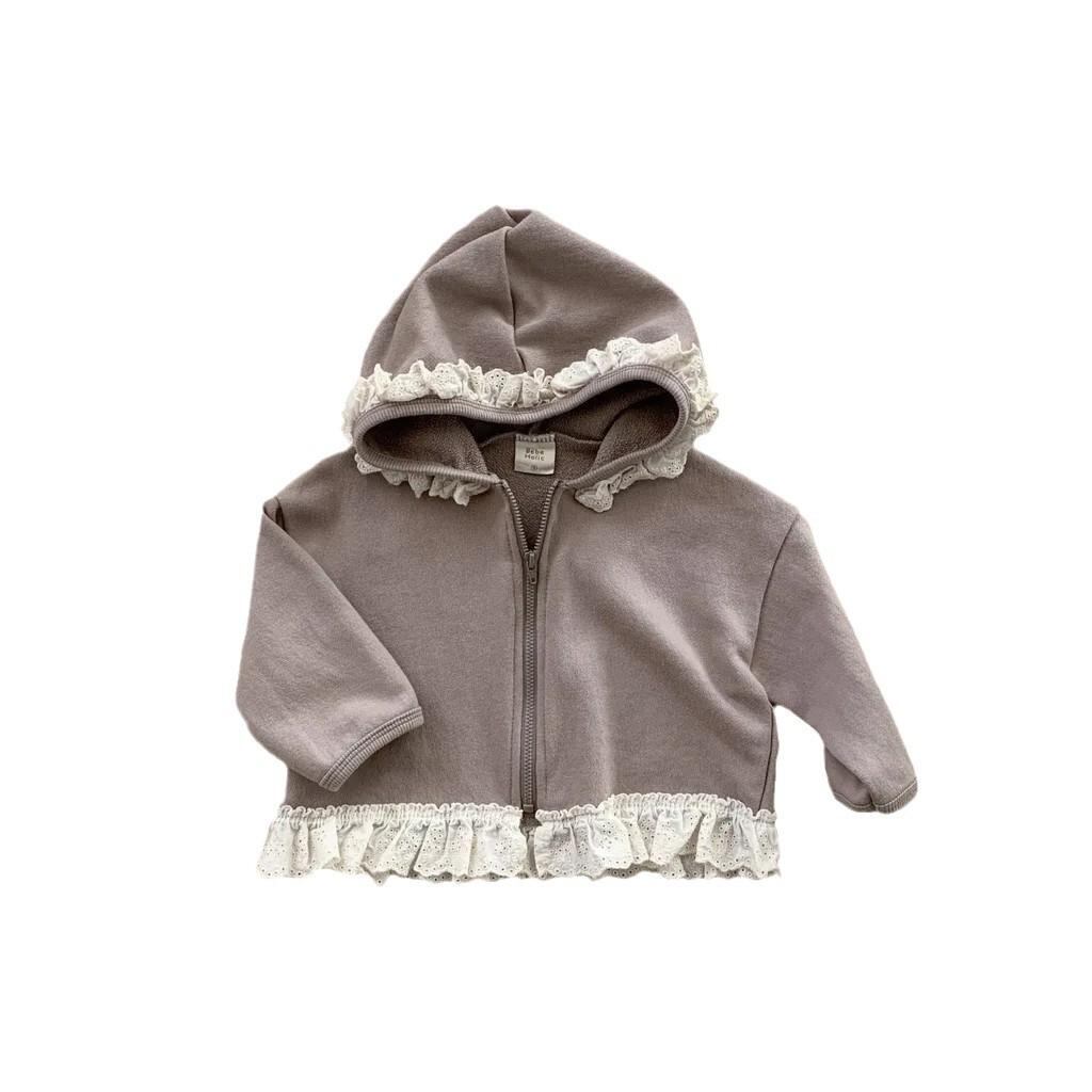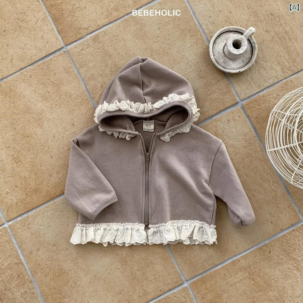 子供服 女の子 パーカー 春秋 ベビー服 フリル 飾り付き 長袖 トップス ジャケット アウター カーディガン 綿100% 幼児 園児 保育園着 普段着 かわいい ガールズウェア 73 80 90 100cm