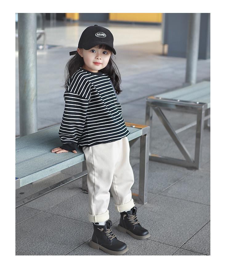 子供服 スウェットシャツ 春秋冬 長袖 丸首 ボーダー柄 アルファベット トップス 裏起毛 暖かい 男女兼用 カジュアルスタイル 普段使い