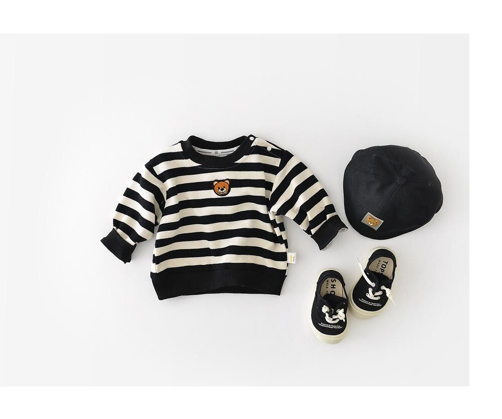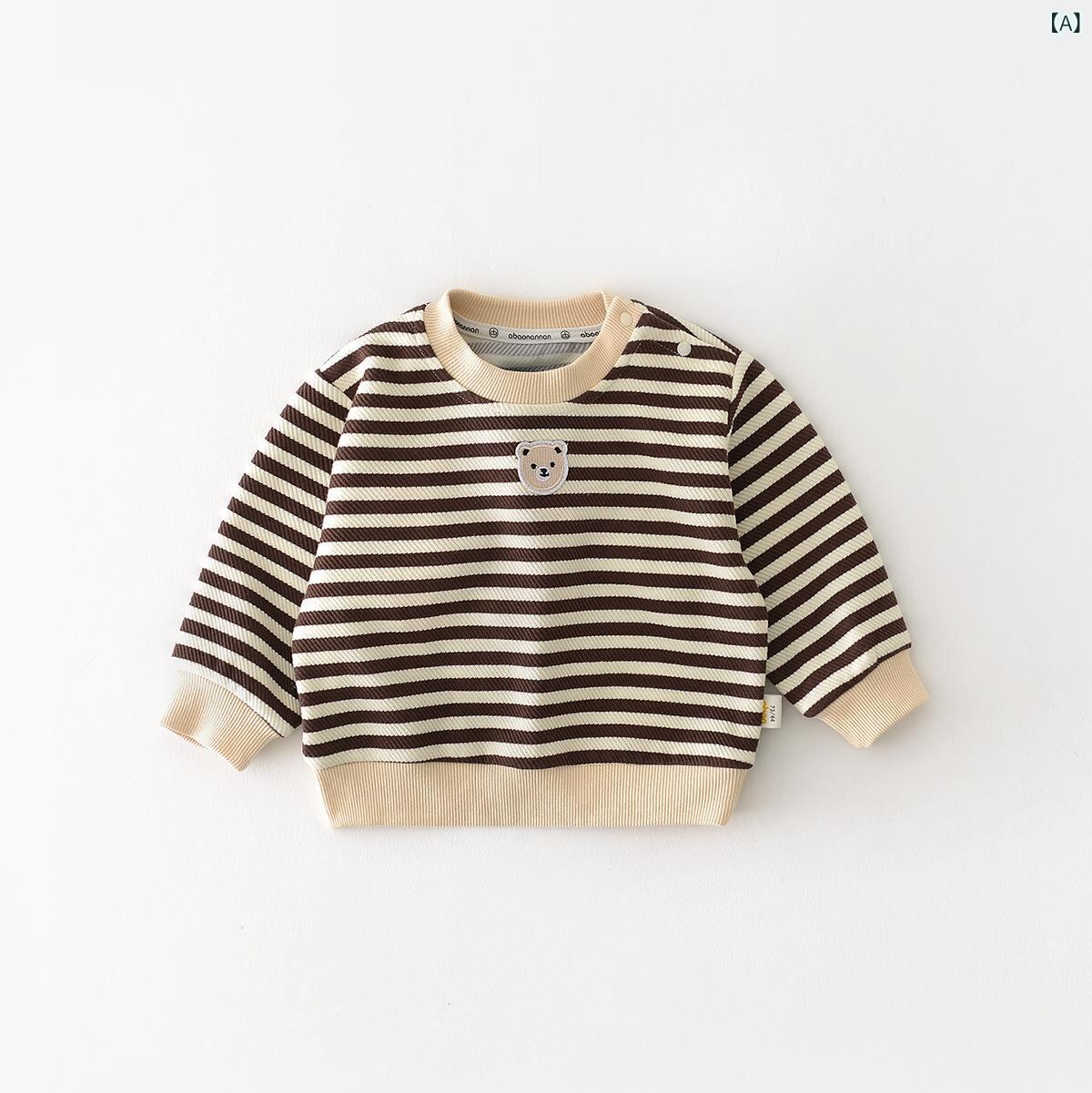 ベビー服 春秋用トップス 男女兼用 赤ちゃん スウェットシャツ 長袖 ストライプ柄 かわいい 幼児 トレーナー 普段使い 部屋着