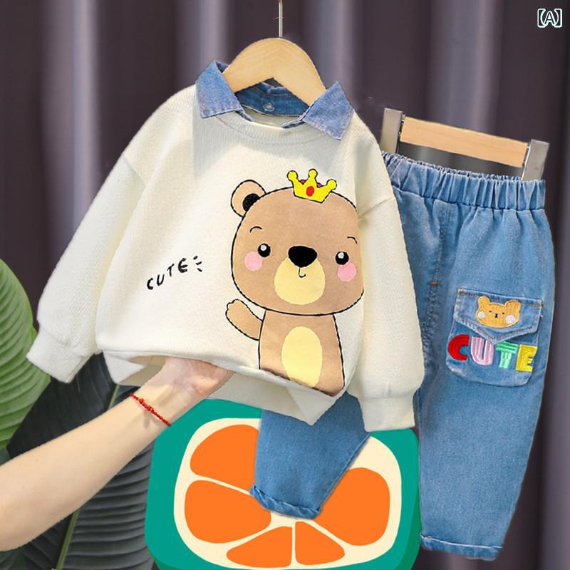 キッズ 男の子 トレーナー パンツ 上下セット 春秋 長袖 コットン 1歳 2歳 3歳 4歳 かわいい 韓国風