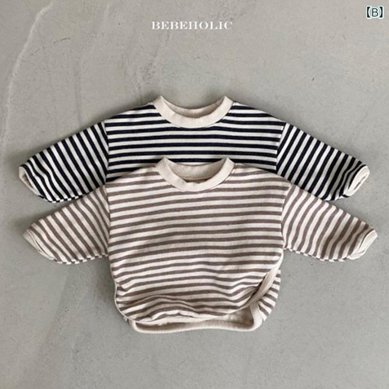 ベビー服 男女兼用 長袖Tシャツ ストライプ カットソー 73CM 80cm 90cm 100cm コットン 春秋 韓国風 かわいい 普段使い