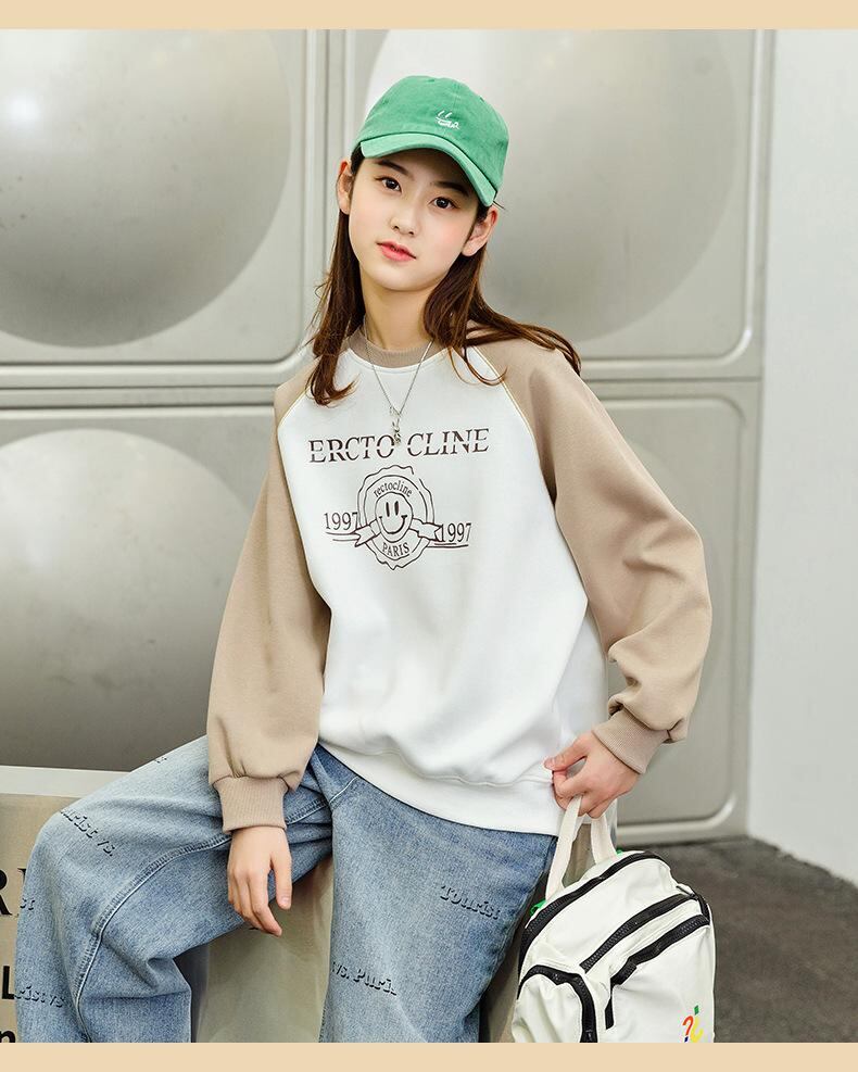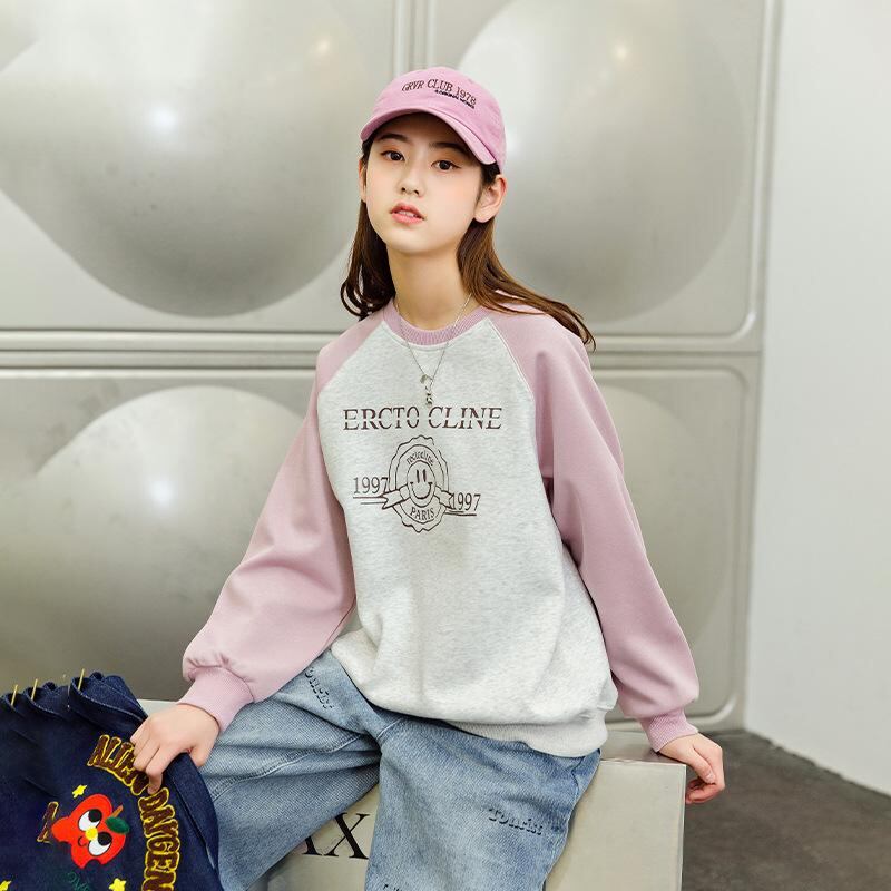 子供用スウェットシャツ 女の子 春秋 トップス 中大サイズ 長袖 プルオーバー カットソー 普段着 部屋着 通学着 かわいい 140 150 160 170 175 ピンク系 コーヒー色