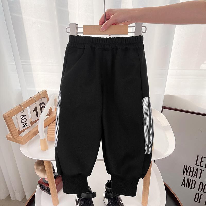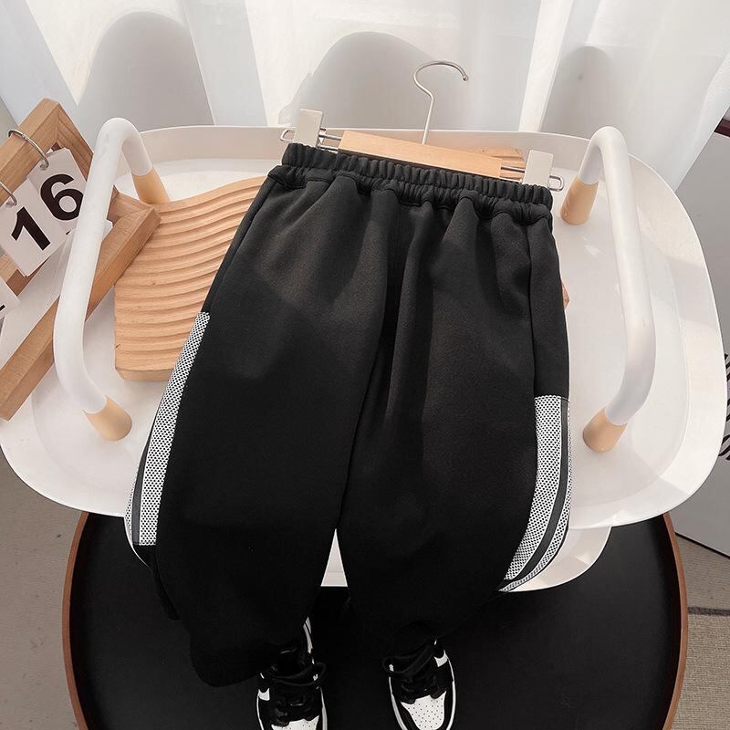 キッズ 男の子用 スウェット セットアップ 上下セット ボーイズ 秋物 長袖 トップス パンツ スポーティー カジュアル 普段着 綿 黒