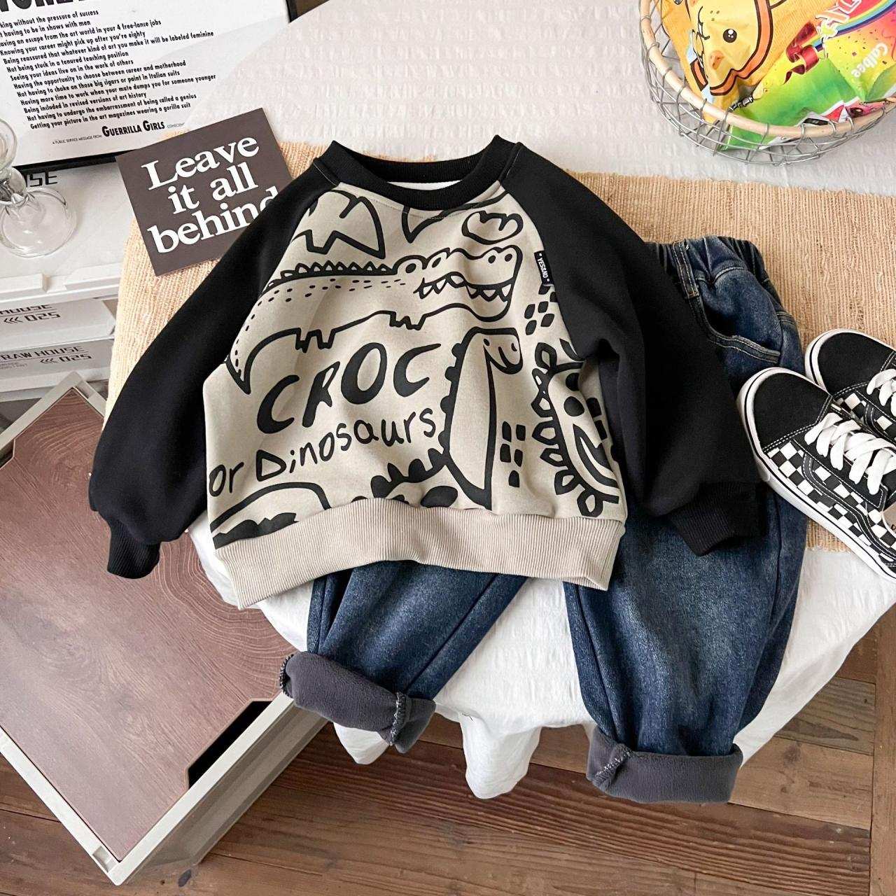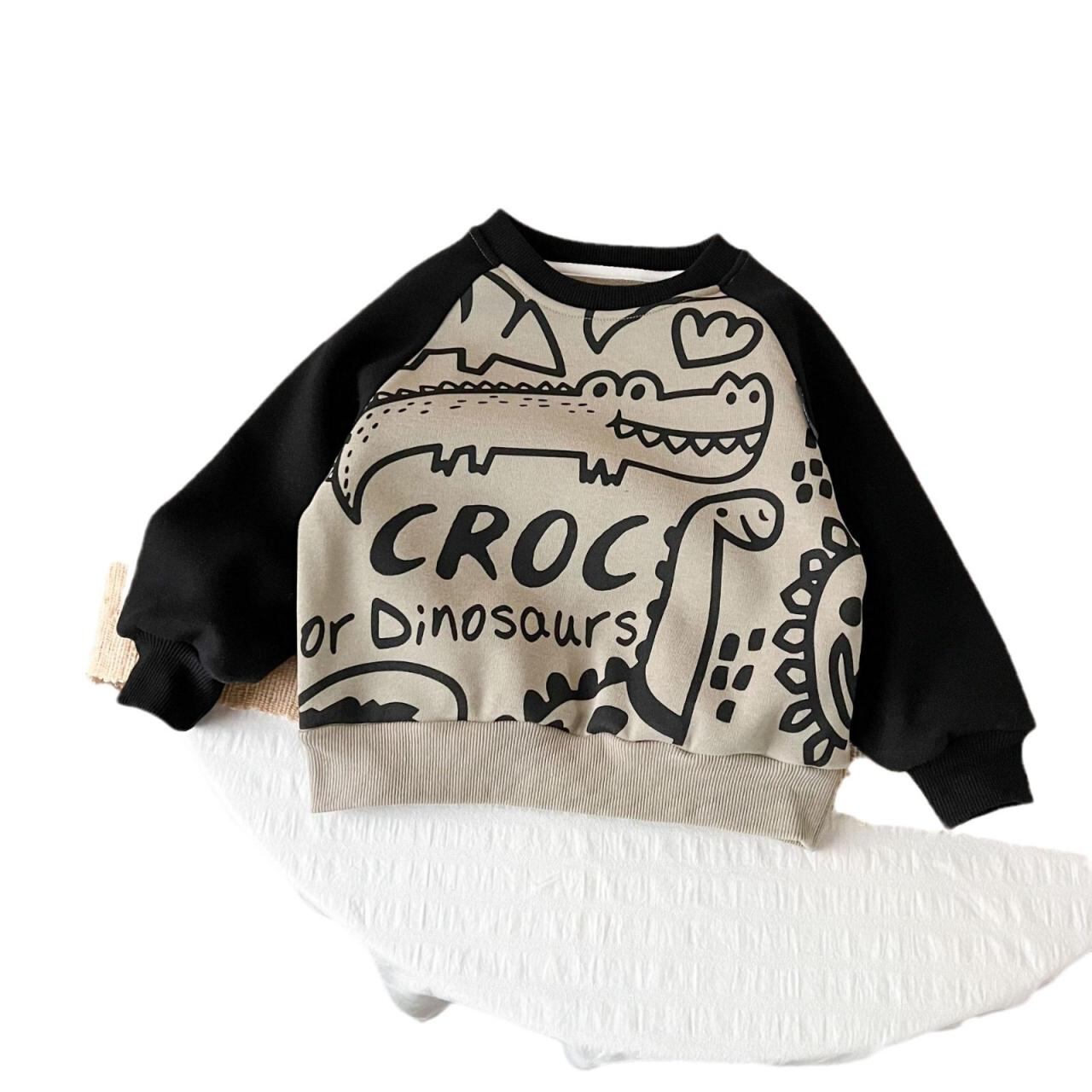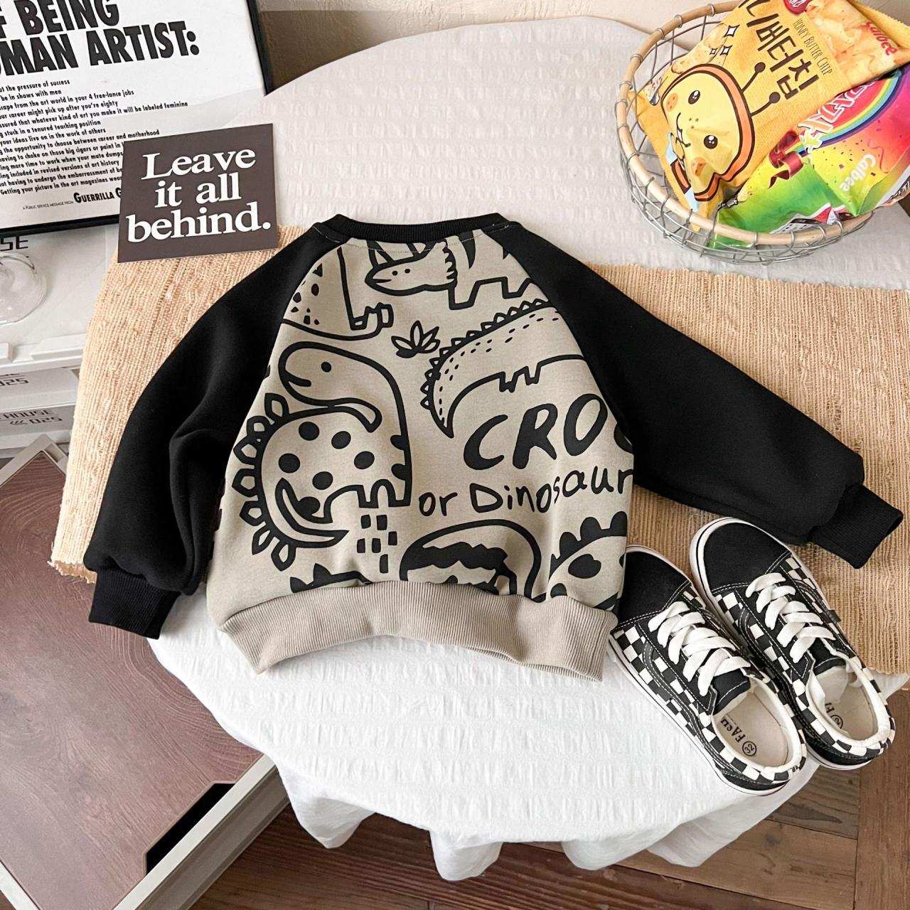 子供服 キッズ 秋冬 トレーナー 長袖 韓国風 かわいい 男の子 恐竜 厚手 オリーブグリーン 90cm 100cm 110cm 120cm 130cm 140cm 150cm 綿