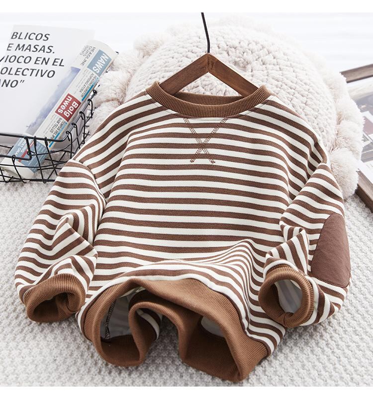 子供用トレーナー 秋冬 春秋 男女兼用 トップス 裏起毛 ストライプ柄 普段使い かわいい 韓国風 ブラック グリーン ブラウン 110cm 120cm 130cm 140cm 150cm 160cm