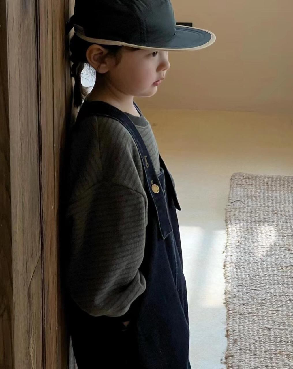 子供服 セットアップ 春秋 デニム オーバーオール ストライプ パーカー 2点 上下セット かわいい 普段着 長袖 男の子 女の子 幼児 幼稚園 小学生