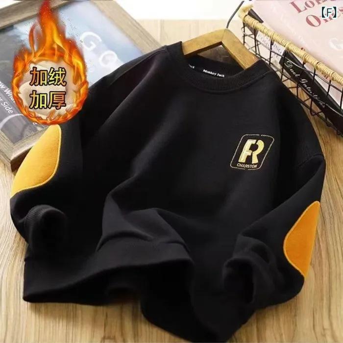 子供服 トレーナー 男の子 裏起毛 トップス 秋冬 厚手 防寒 暖か 普段着 部屋着 アウトドア 緑 杏色 黒 120 130 140 150 160 170