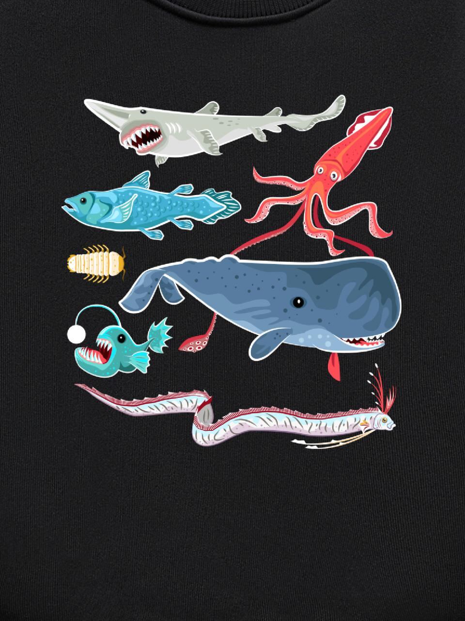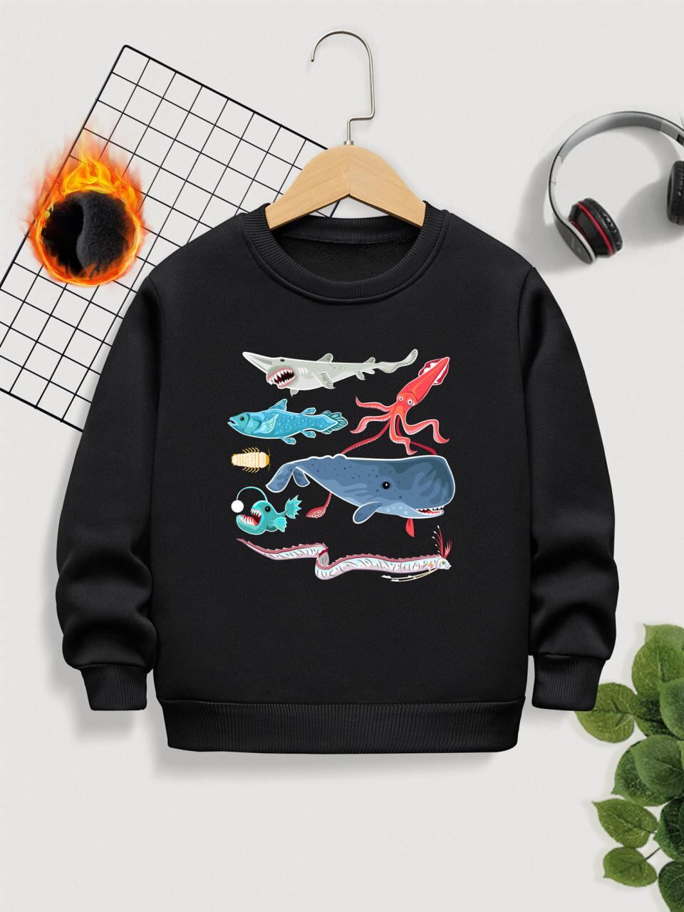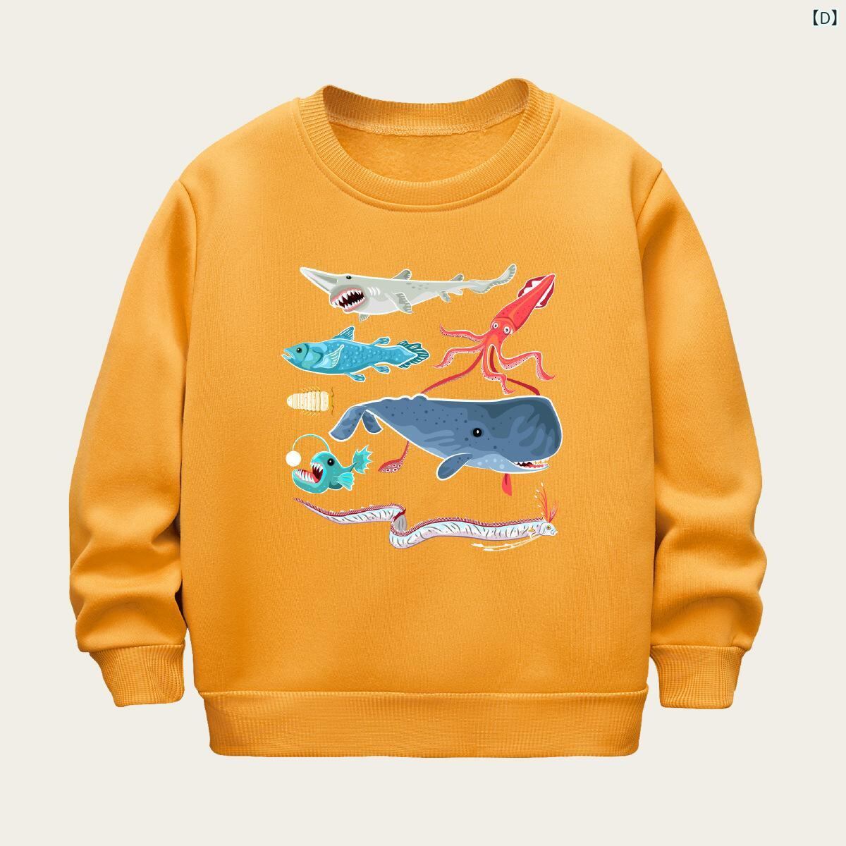 キッズ 長袖 トレーナー 秋冬 裏起毛 海洋 生き物 プリント カジュアル 厚手 子供服 男の子 女の子 普段着 部屋着