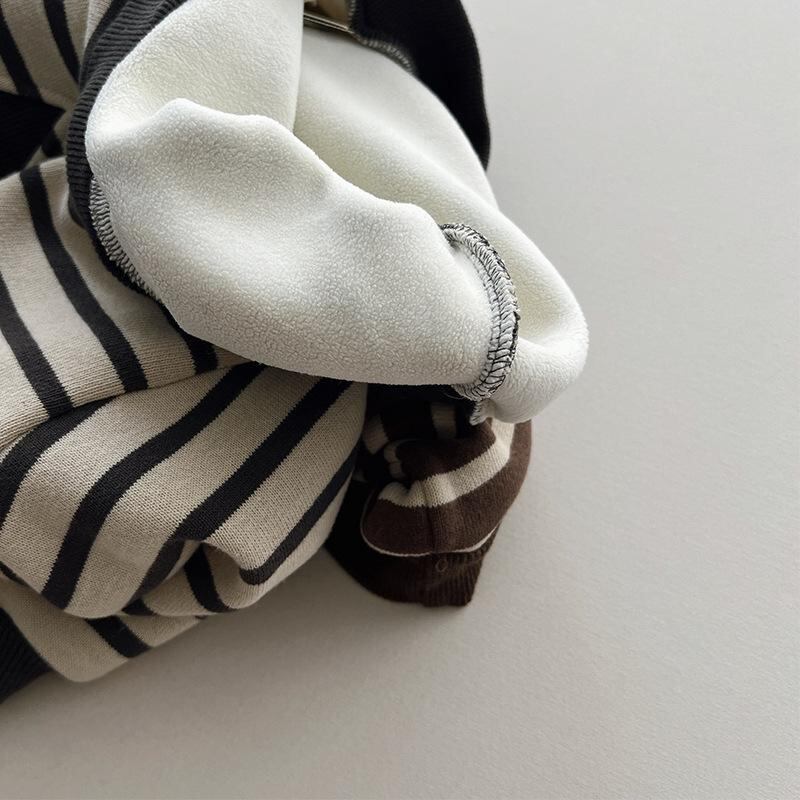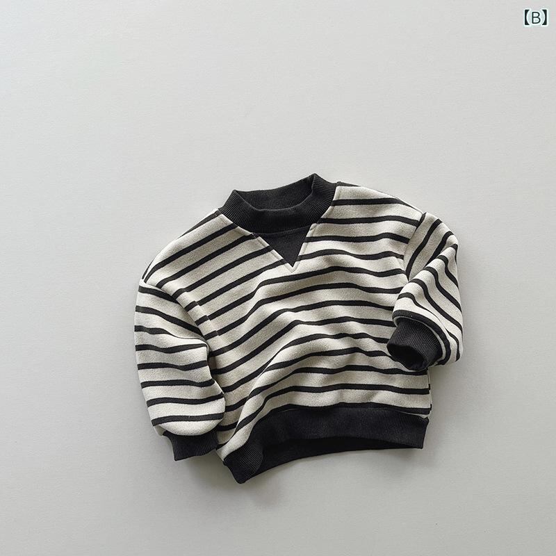 子供服 スウェット 秋冬 ベビー 男女児 裏起毛 ストライプ トップス 韓国風 カジュアル 暖かい 長袖 80 90 100 110 120 130cm 綿100%