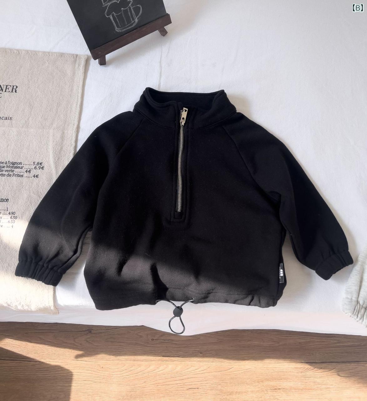 キッズ 男の子 スウェット 春秋 トップス ハーフジップ プルオーバー 長袖 無地 普段着 部屋着