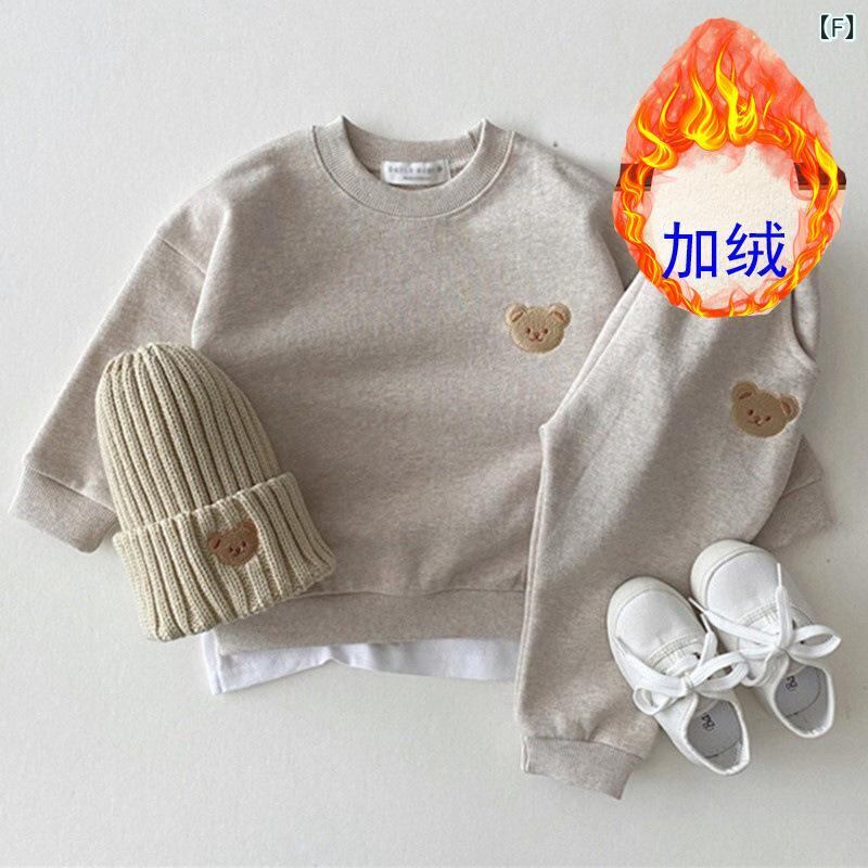 子供服 ベビー服 長袖トレーナー & パンツ 上下2点セット 裏起毛 男女兼用 幼児 小学生 普段着 かわいい 柔らかい 綿混紡 秋冬 イエロー グレー ネイビー ピンク系