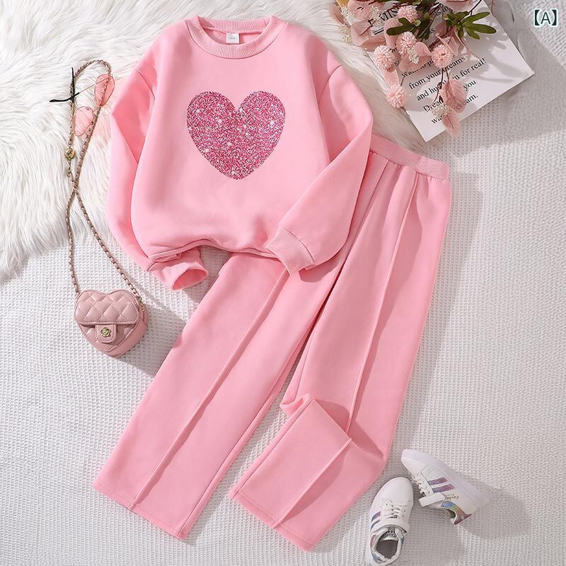 キッズ ガールズ スウェット セットアップ 長袖 パンツ 上下 2点 春秋 かわいい 普段着 部屋着 グレー ピンク系 130 140 150 160 170