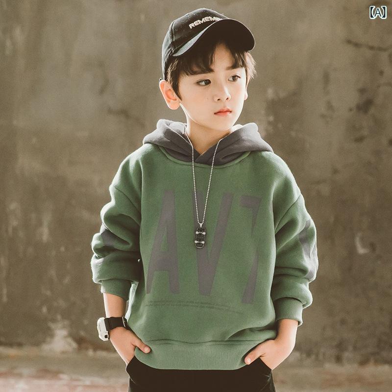 子供服 スウェット 秋冬 子供 スポーツ カジュアル インナー 大 子供 シンプル プリント パーカー トップス 綿100% 長袖 春秋 緑 ミルクホワイト グレー 120cm 130cm 140cm 150cm 160cm 170cm
