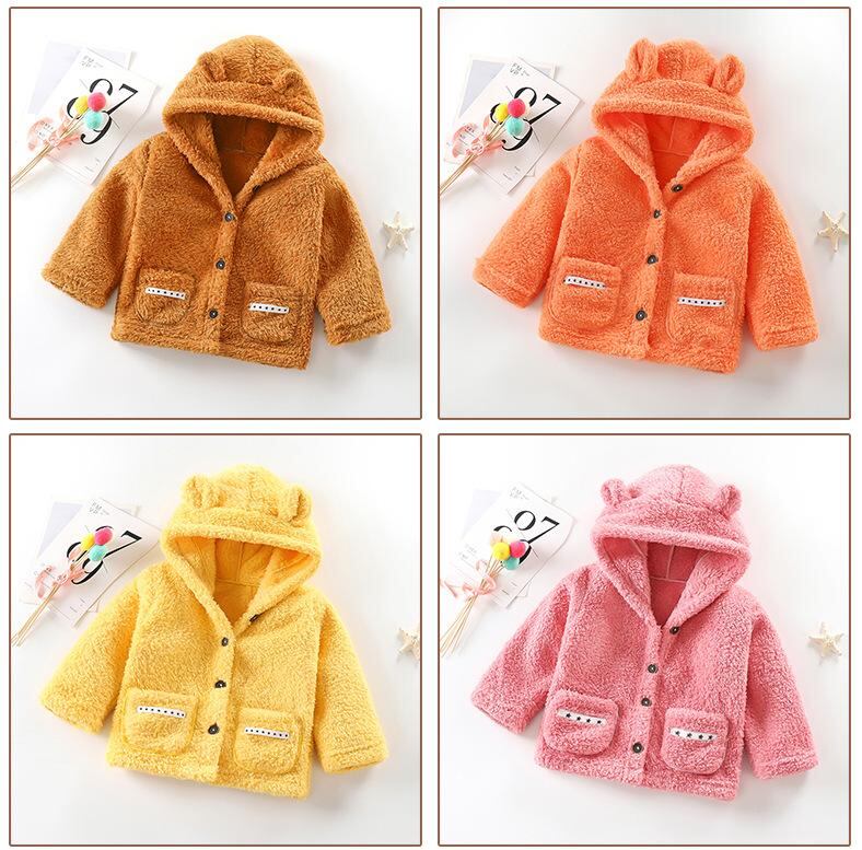 子供服 アウター 子供 男女兼用 かわいい フード付き カーディガン 中綿 防寒 厚手 80 90 100 110 120 130 140 150 ポリエステル ブルー ブラウン イエロー オレンジ ピンク