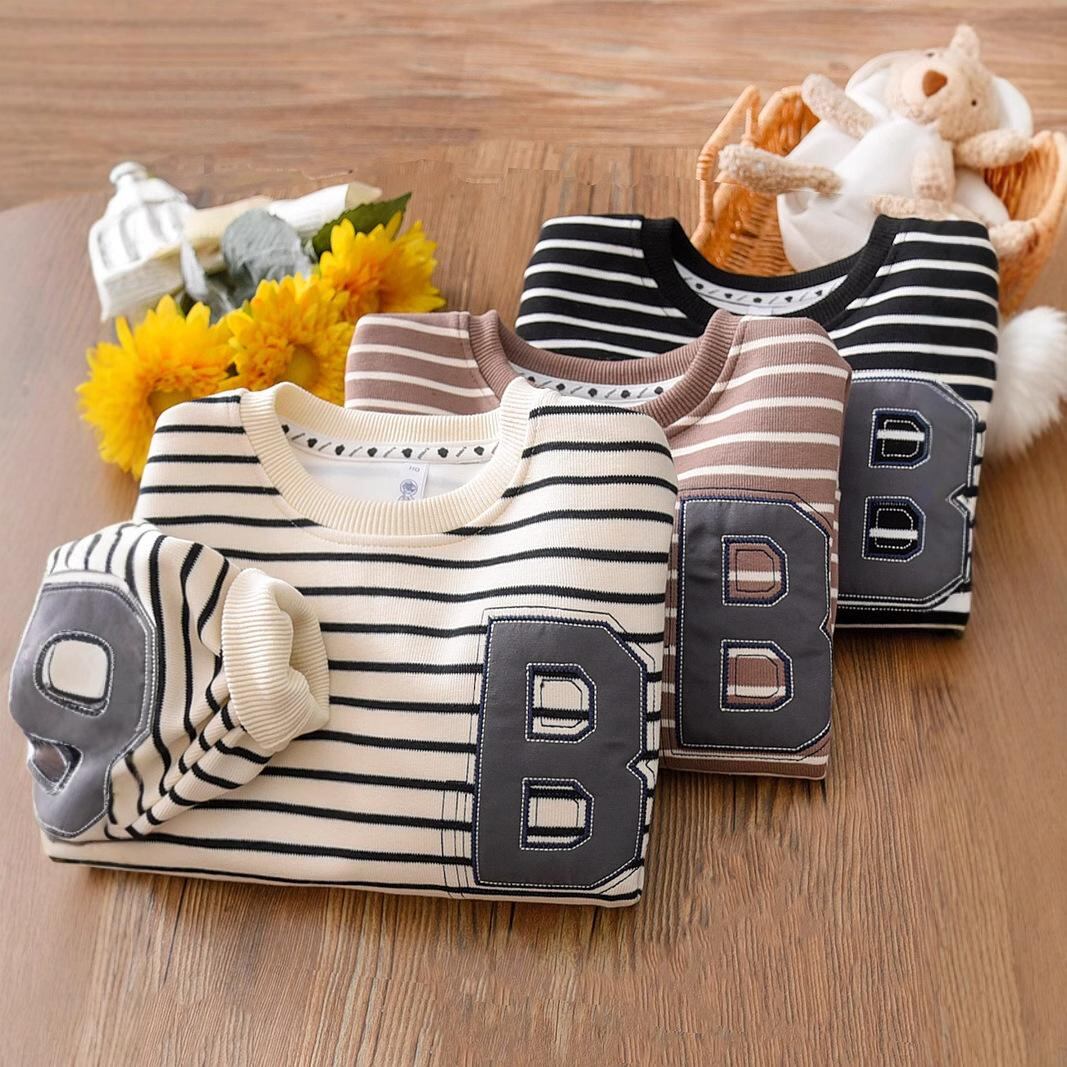 キッズ ボーイズ スウェット 春秋 長袖 ストライプ カットソー 110cm 120cm 130cm 140cm 150cm 160cm 杏色 コーヒー色 ブラック