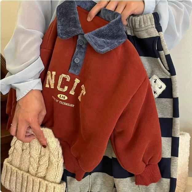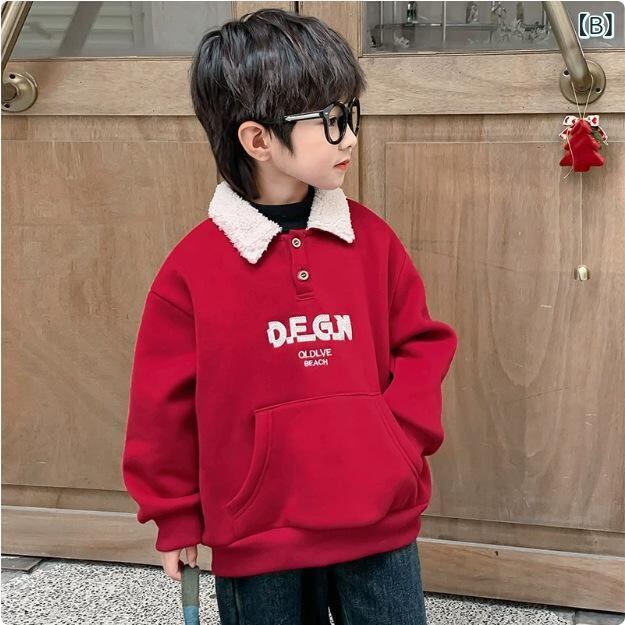 子供服 男の子用 裏起毛トレーナー クリスマス風 トップス 厚手 赤色 格子柄 普段着 部屋着