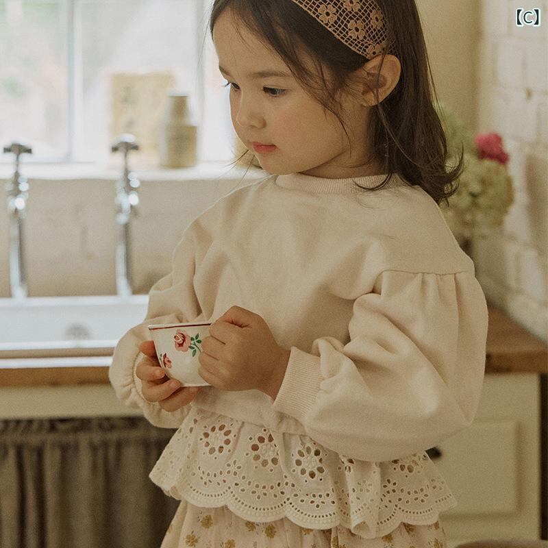 子供服 スウェット ガールズ 秋物 セットアップ 韓国風 女の子 丸首 バットスリーブ ゆったり 長袖 トップス