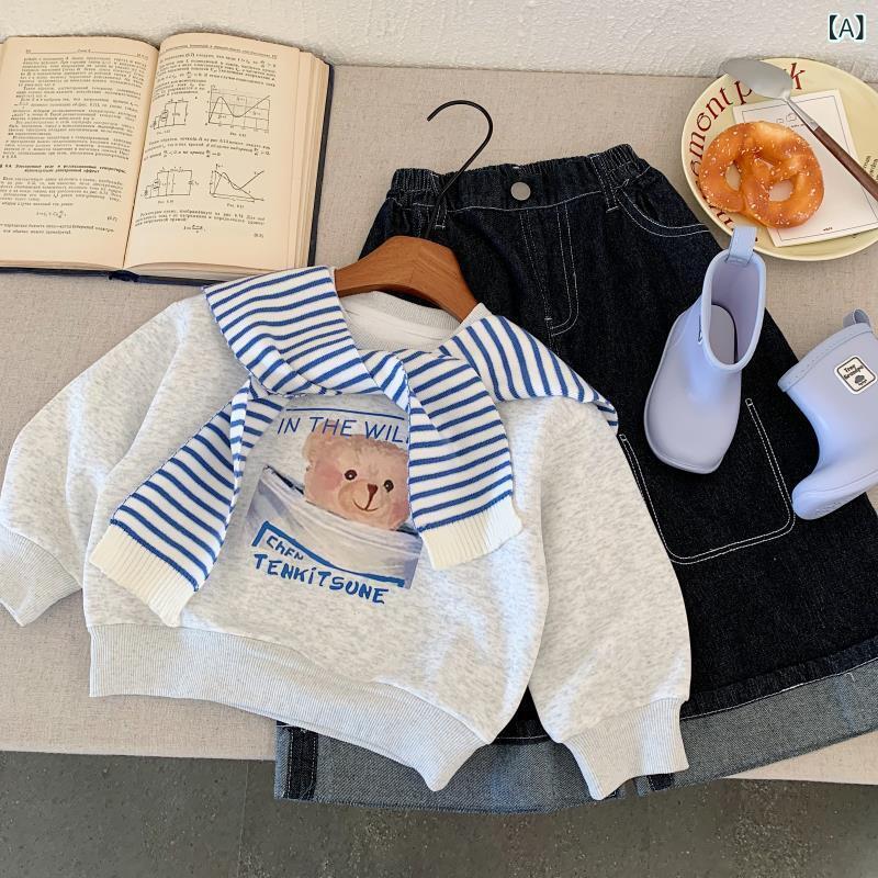 子供服 スウェット 春秋 男女兼用 韓国風 かわいい 小熊 プリント 長袖 トレーナー トップス 花灰色 90cm 100cm 110cm 120cm 130cm