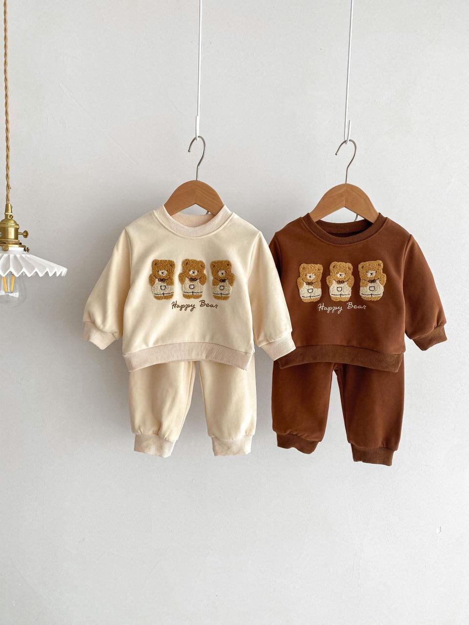 ベビー服 上下セット 刺繡 トレーナー パンツ かわいい 小熊 ゆったり 春秋 男女兼用 コットン