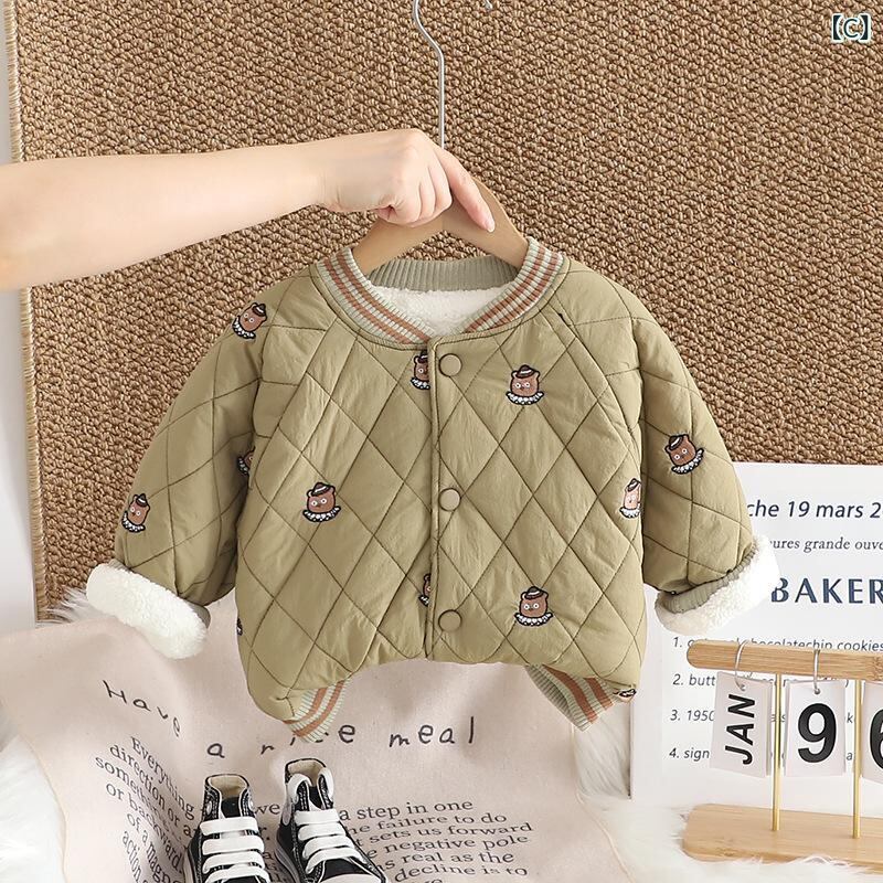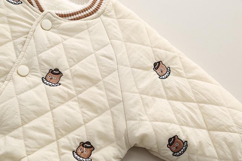 ベビー服 男女兼用 アウター 秋冬 厚手 フリース ジャケット チェック柄 刺繡 クマ耳付き パーカー コート かわいい 暖かい 防寒 裏起毛 前開き
