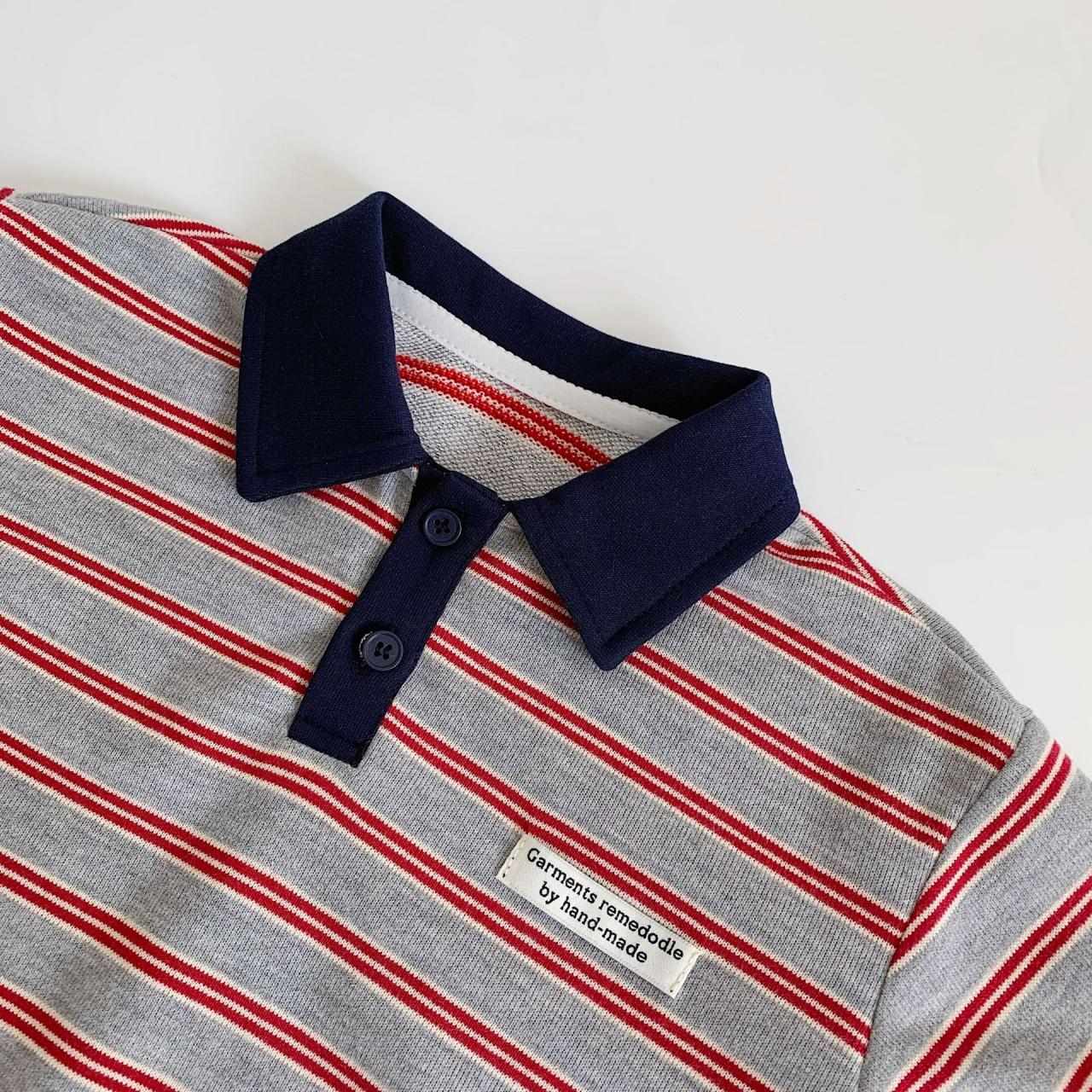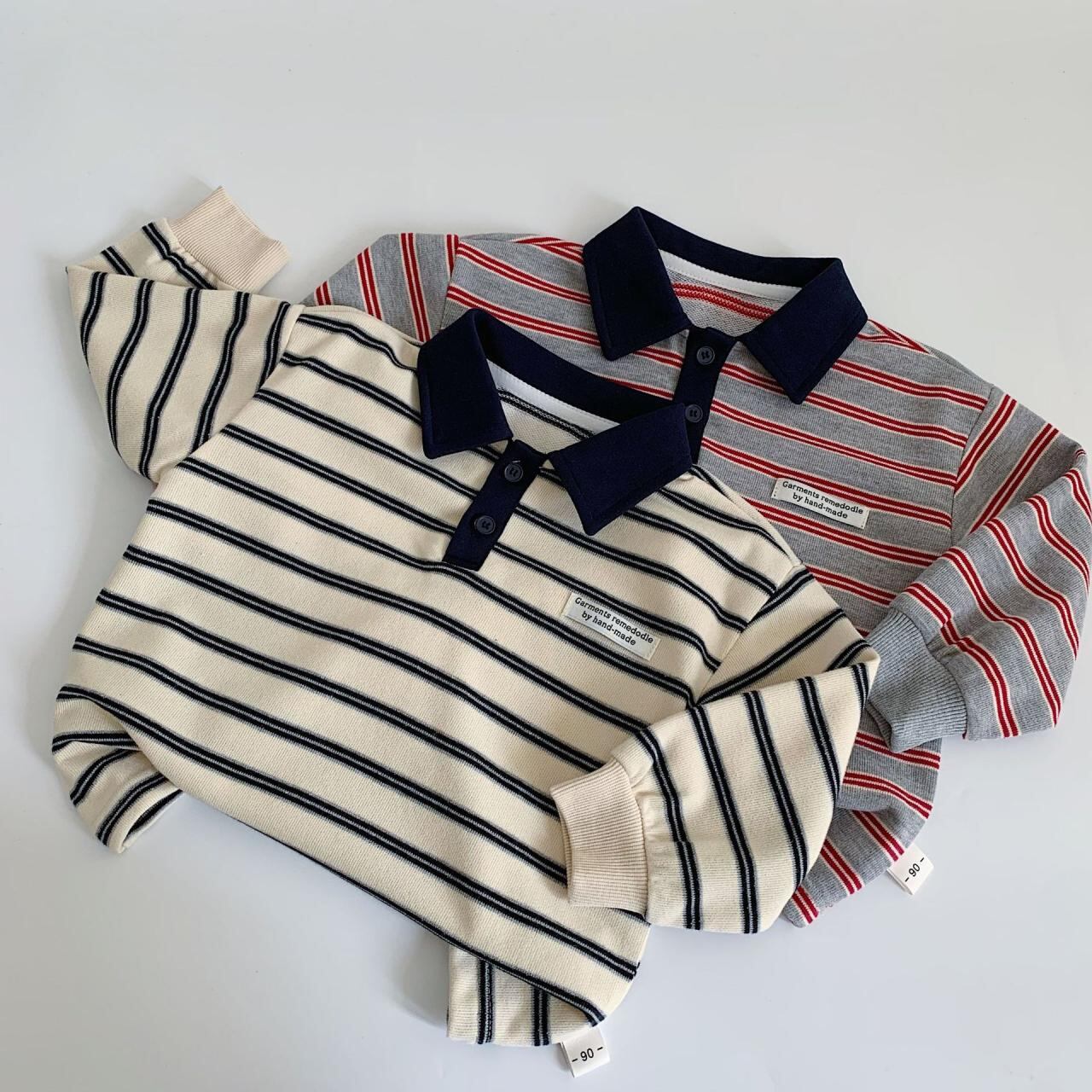 子供服 スウェット 春秋 男女児 ストライプ 長袖 ポロシャツ トップス ベビー服 秋服 90cm 100cm 110cm 120cm 130cm 140cm 綿 柔らかい かわいい スポーティ