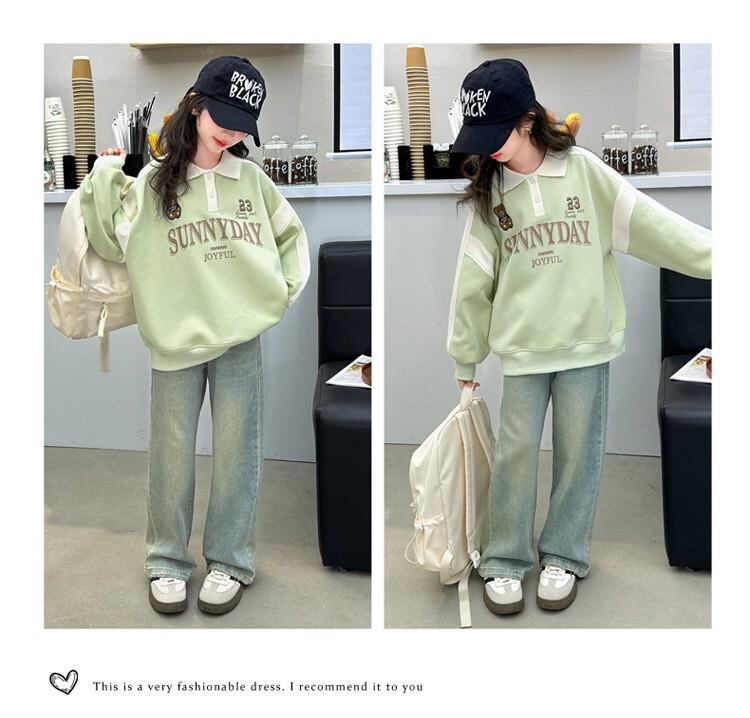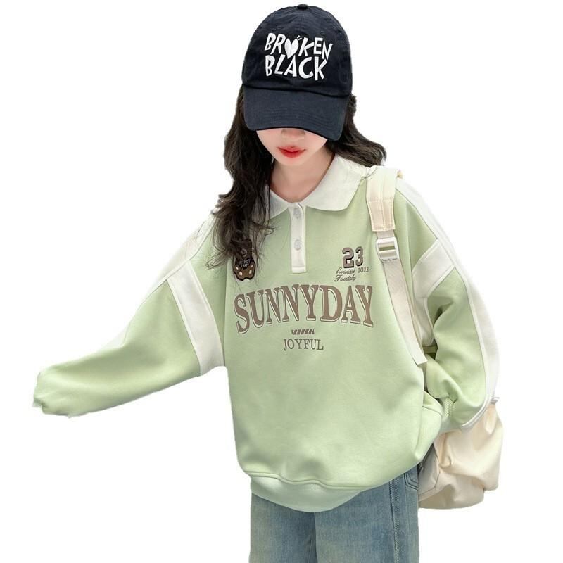 子供用ポロシャツ襟付きトレーナー 女児長袖トップス アルファベット柄 春秋 カジュアル 普段使い ポリエステル