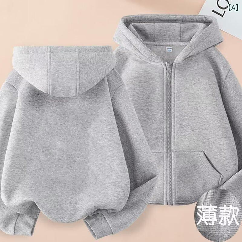キッズ パーカー 秋冬 無地 ジップアップ スウェット 中 крупный 子供 裏起毛 灰色 黒 ポリエステル