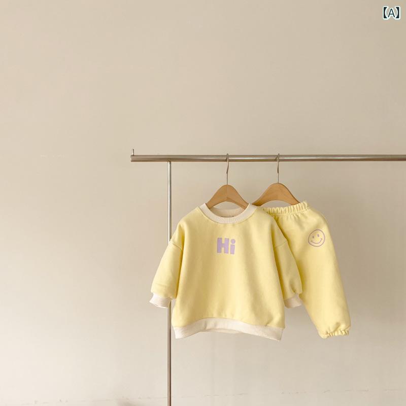 子供用セットアップ ベビー服 春秋 カジュアル スウェット カートゥーン アルファベット スマイル 絞り染め ロングパンツ 上下セット 綿