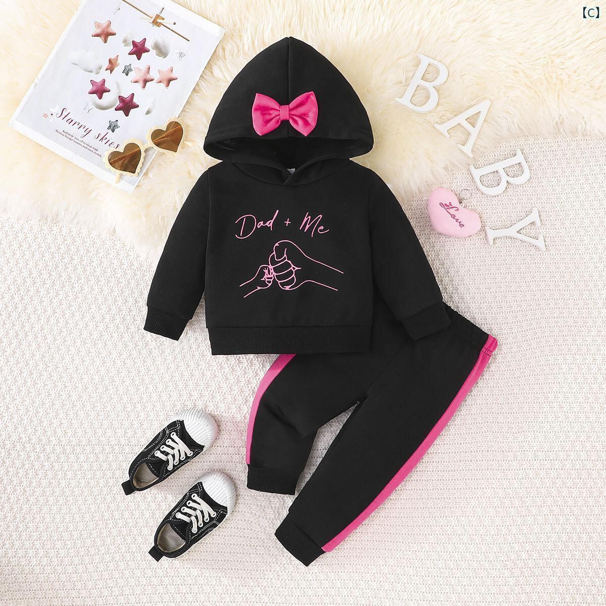 ベビー服 女の子 上下セット 長袖パーカー ロングパンツ 2点セット 赤ちゃん 幼児 春秋 薄手 普段着 かわいい 蝶結び パステルカラー