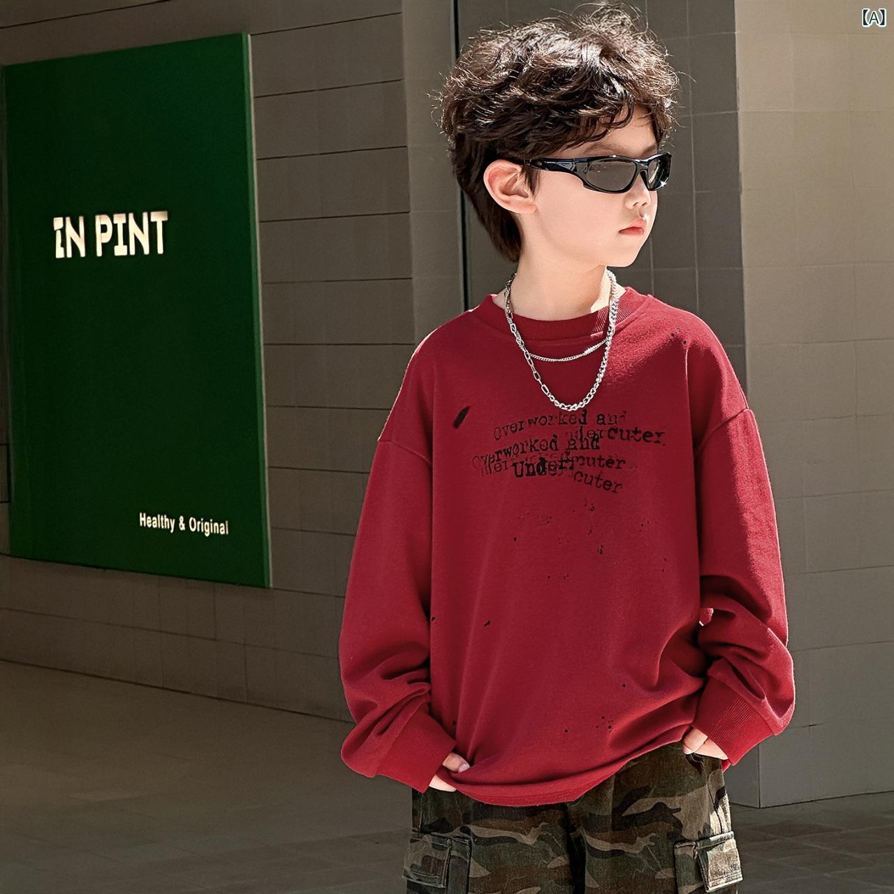 子供用 トレーナー 男の子 秋物 韓国風 子供服 プリント 丸首 トップス スポーティー