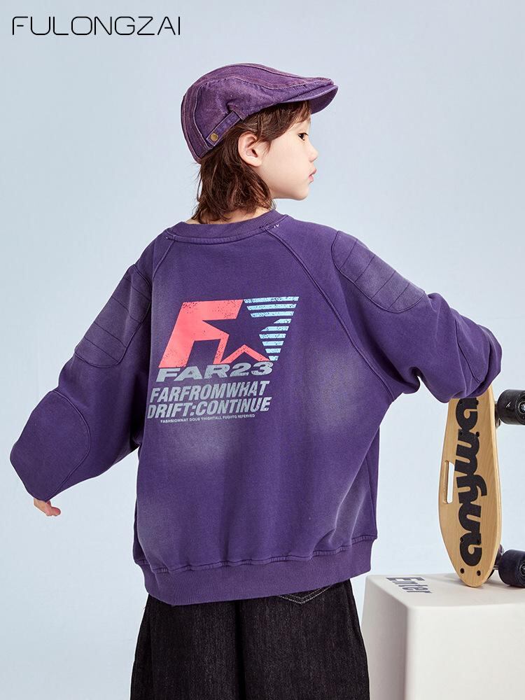 子供服 キッズ 春秋 スウェットシャツ 男の子 女の子 長袖 トップス カットソー 韓国風 綿100% 中学生 高校生 パープル