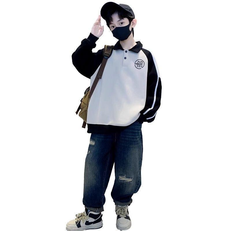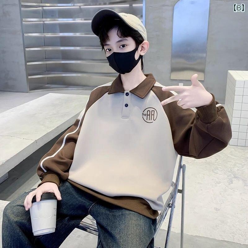 子供服 スウェットシャツ 男の子 春秋 トップス 長袖 カットソー 子供 POLOシャツ ゆったり 普段使い 部屋着 ブラック カーキ 120 130 140 150 160 170