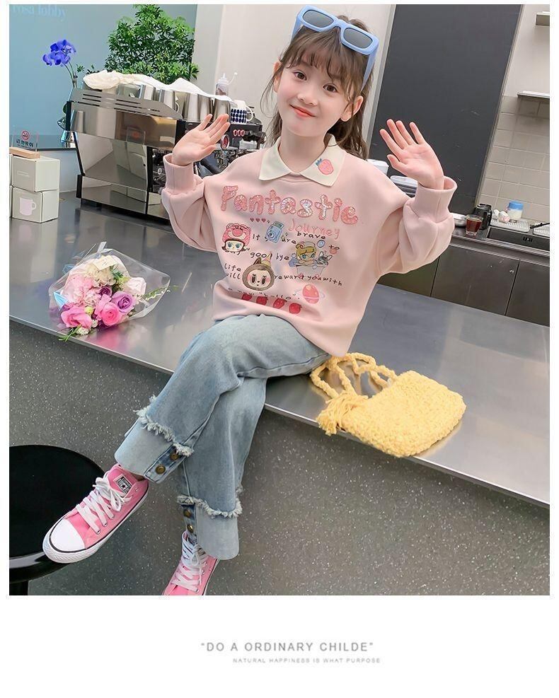 キッズ ガールズ スウェット 秋冬 裏起毛 厚手 プリント かわいい カジュアル トップス 長袖 女の子 子供