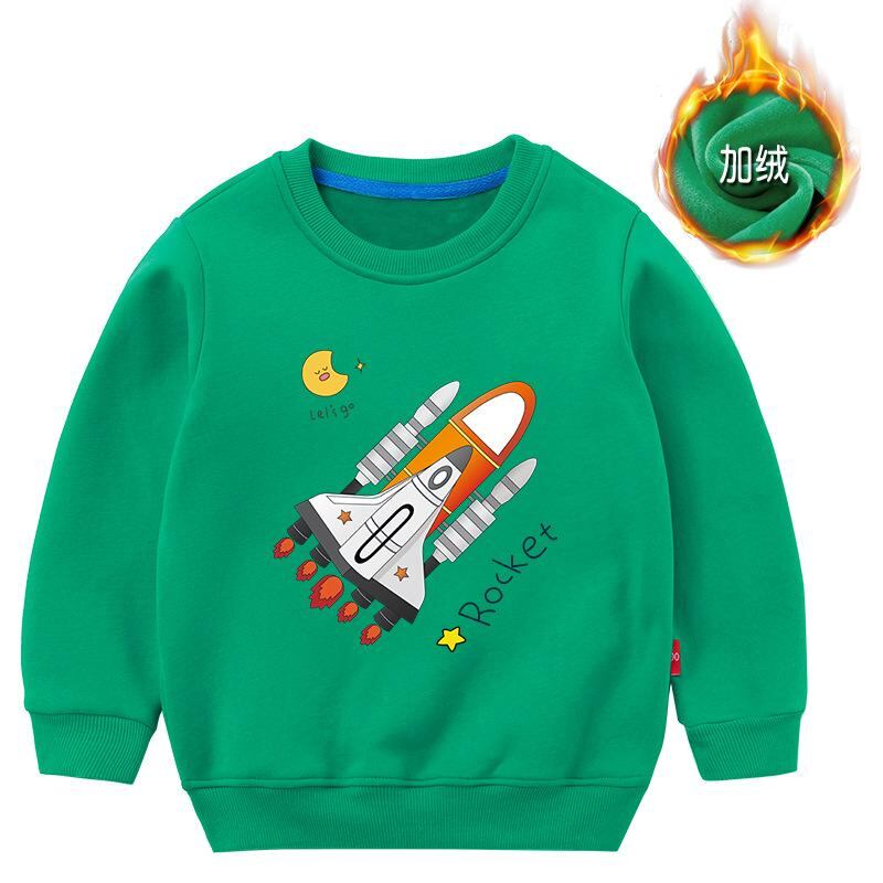 子供服 秋冬 キッズ スウェット 防風 暖かい カジュアル トップス 裏起毛 ロケット柄 白 青 黒 赤 黄色 グレー