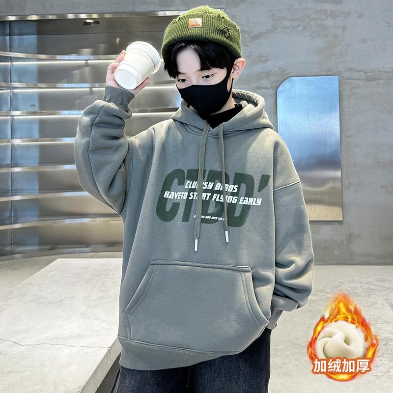 キッズ 男の子 トレーナー 冬服 裏起毛 厚手 トップス 8歳以上 130cm 140cm 150cm 160cm 170cm 180cm 灰色系 オフホワイト系