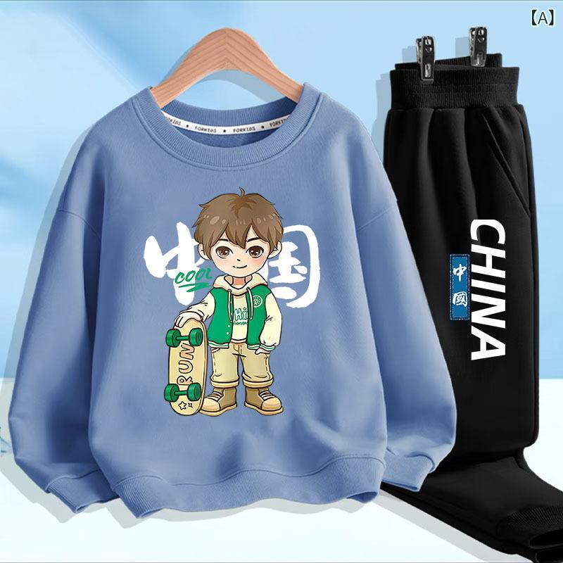 子供服 セットアップ キッズ ボーイズ 春秋 薄手 スウェット 上下セット 長袖 トップス 長ズボン 普段着 部屋着 カジュアルウェア カートゥーン柄