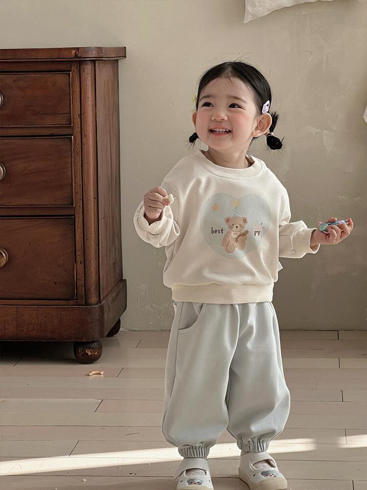 子供服 スウェット セットアップ 女児 ベビー 幼児 上下セット 長袖 長ズボン 綿混 かわいい カジュアル 普段着 部屋着 ブルー ピンク系