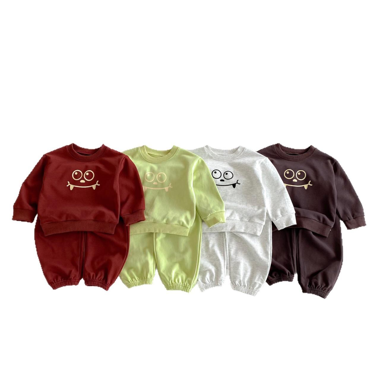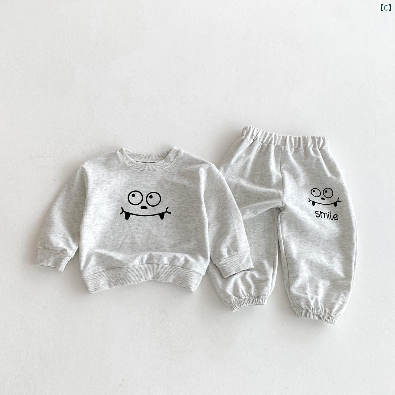 子供用 セットアップ ボーイズ ガールズ 長袖 スウェット & パンツ 上下 2点 春秋 男女兼用 かわいい プリント コットン 柔らかい カジュアル 普段着 部屋着 グレー カーキ