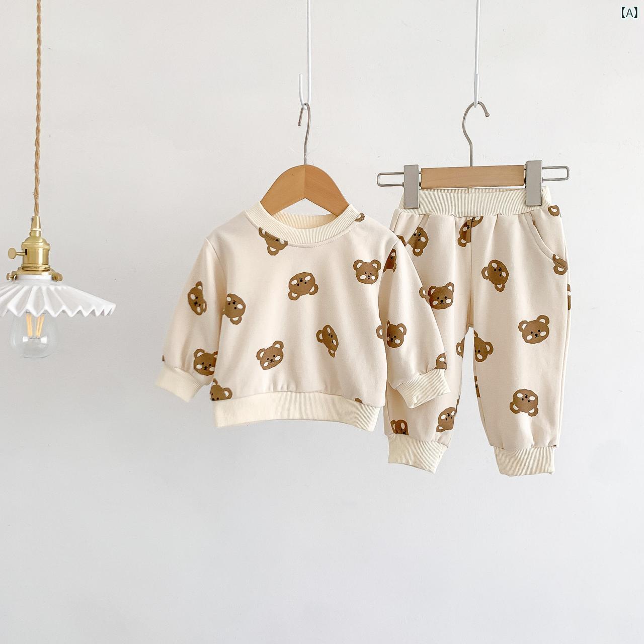 ベビー服 上下セット 春秋 男女兼用 コットン くま柄 トレーナー パンツ 2点セット 幼児 普段使い かわいい 長袖 赤ちゃん 66cm 73cm 80cm 90cm 100cm